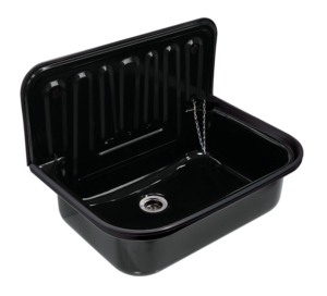 Описание Мивка Аусгус, стомана, черна, емайлирана С пластмасова рамка, черна Дебелина на стоманата на мивката 1 мм Включит. профил гръб…